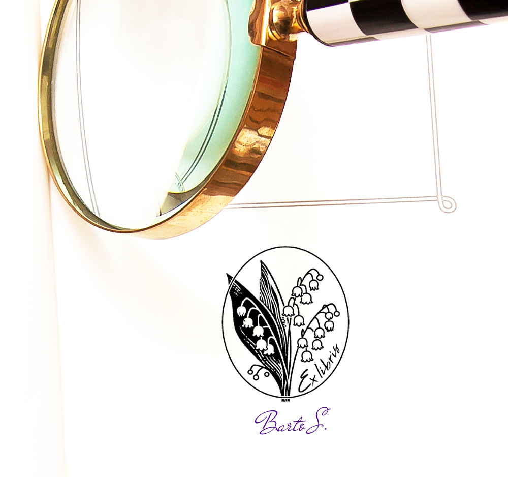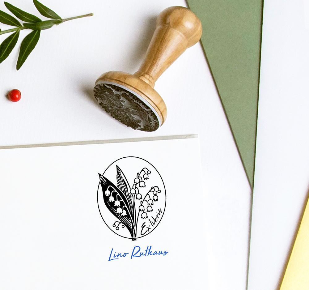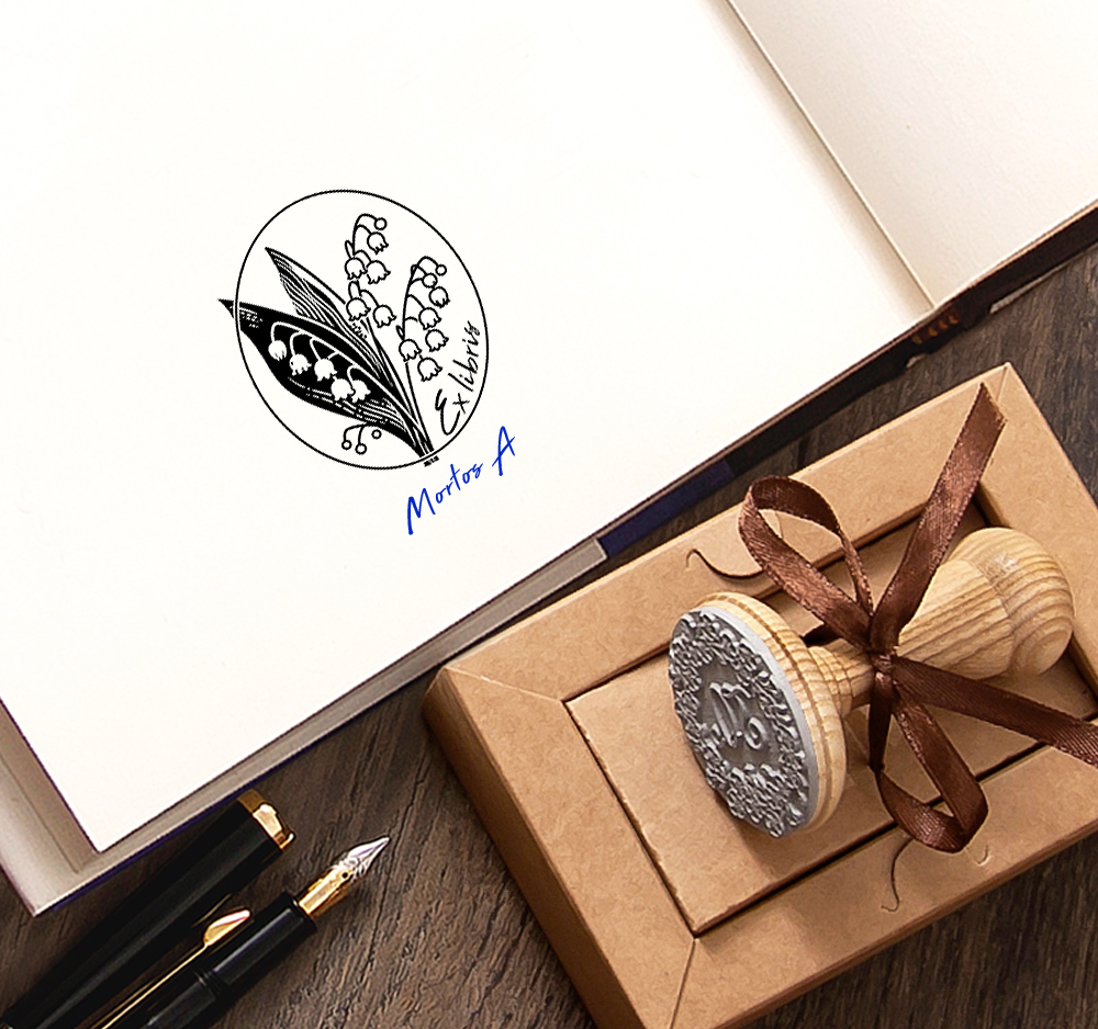 Ex libris su pakalnučių puokšte – savo bibliotekos knygoms žymėti.