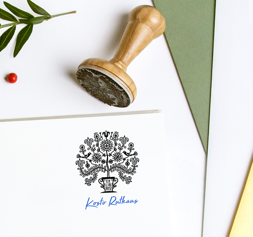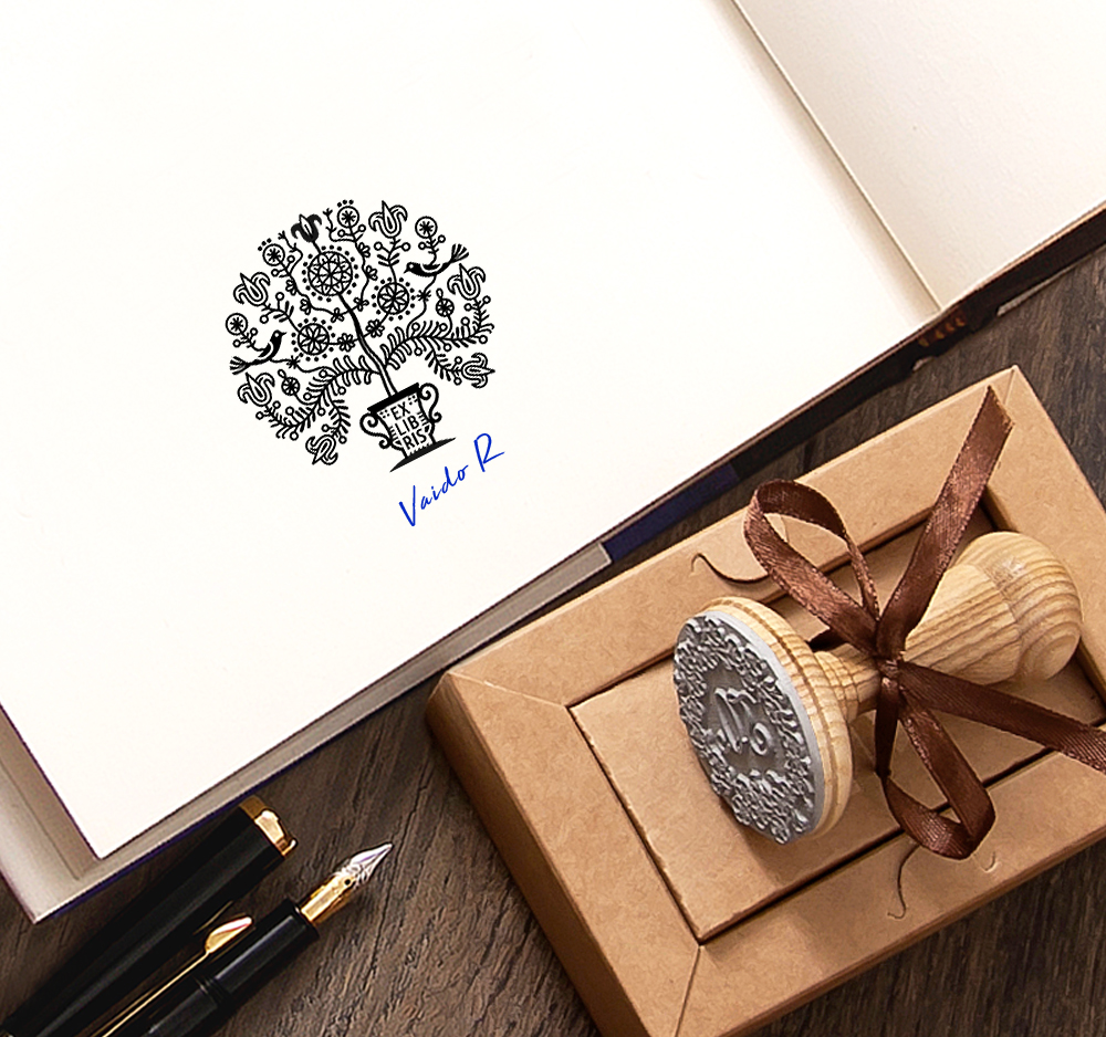 Ex libris su Gyvybės Medžiu – asmeninės bibliotekos knygoms žymėti.